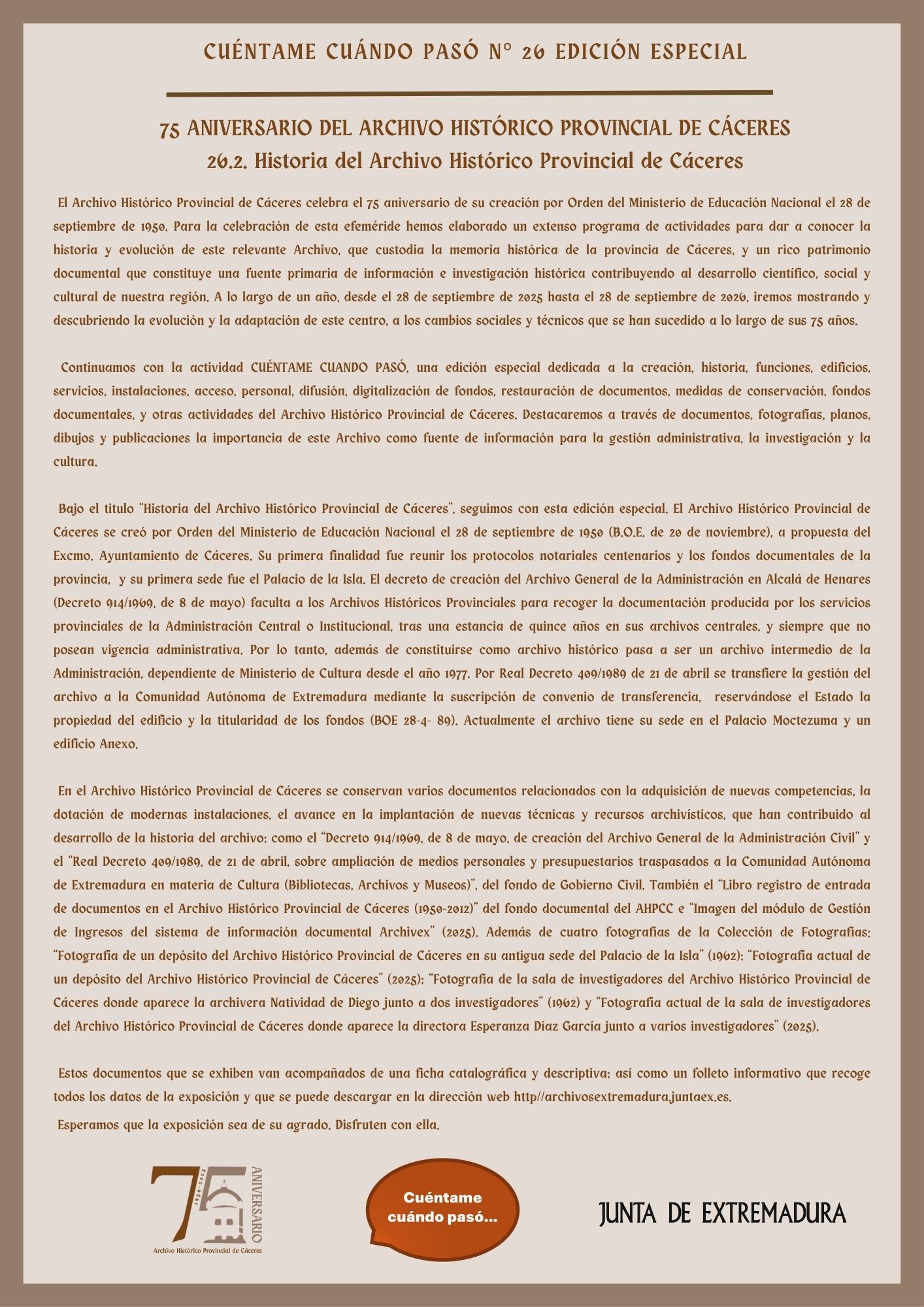 75 ANIVERSARIO DEL ARCHIVO HISTÓRICO PROVINCIAL DE CÁCERES