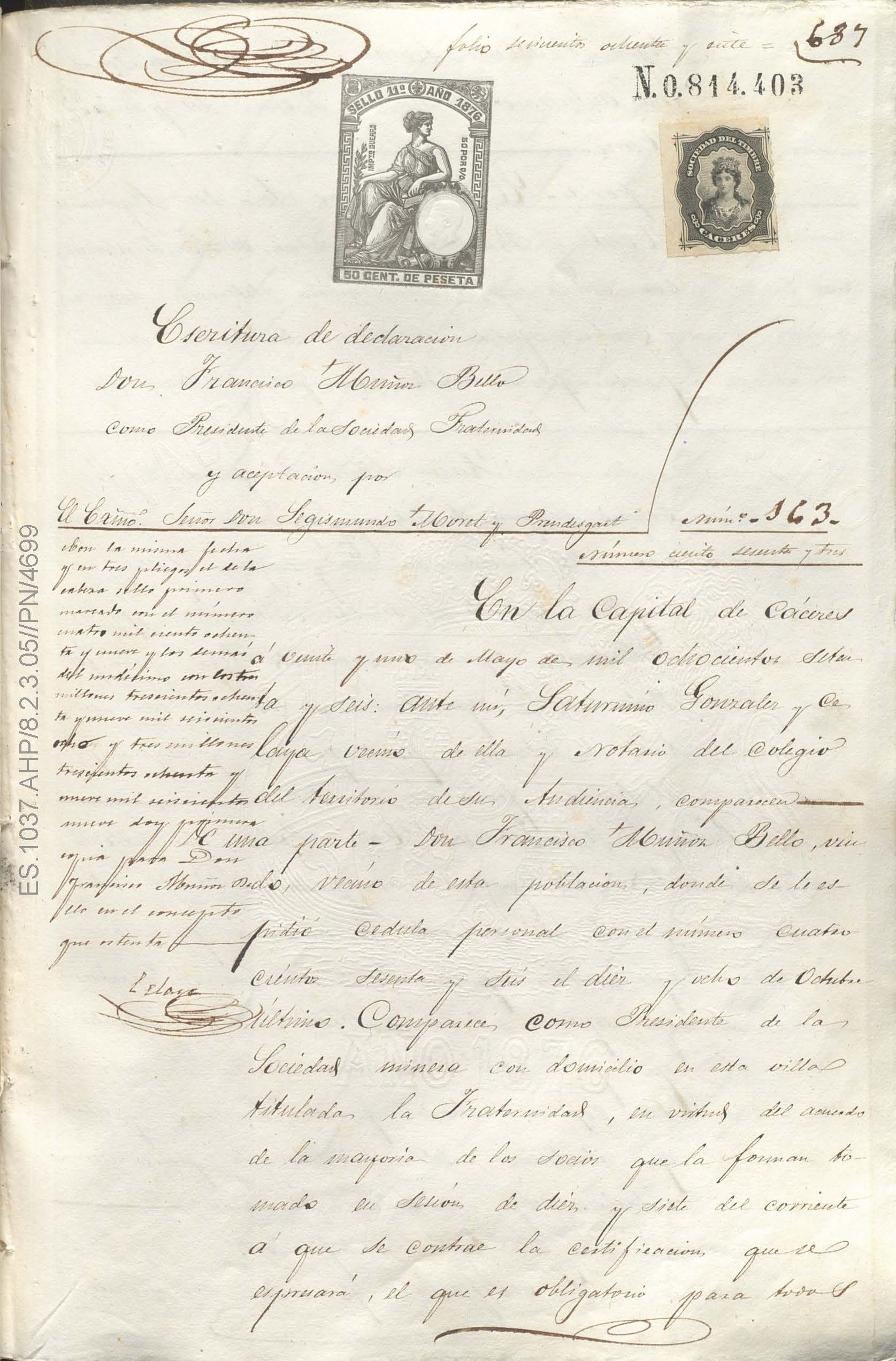 Escritura de constitución de la Sociedad Minera La Fraternidad.