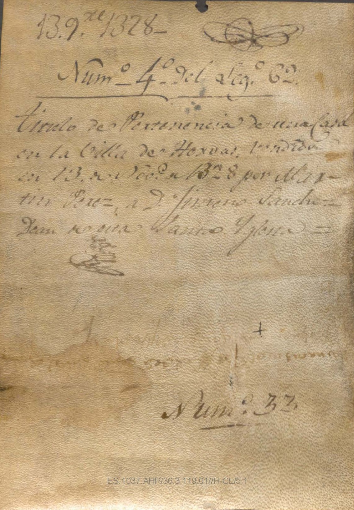 Escritura de compraventa de una casa en Hervás. Vendida por Martín Pérez a Jimeno Sánchez, deán de la Iglesia de Hervás.